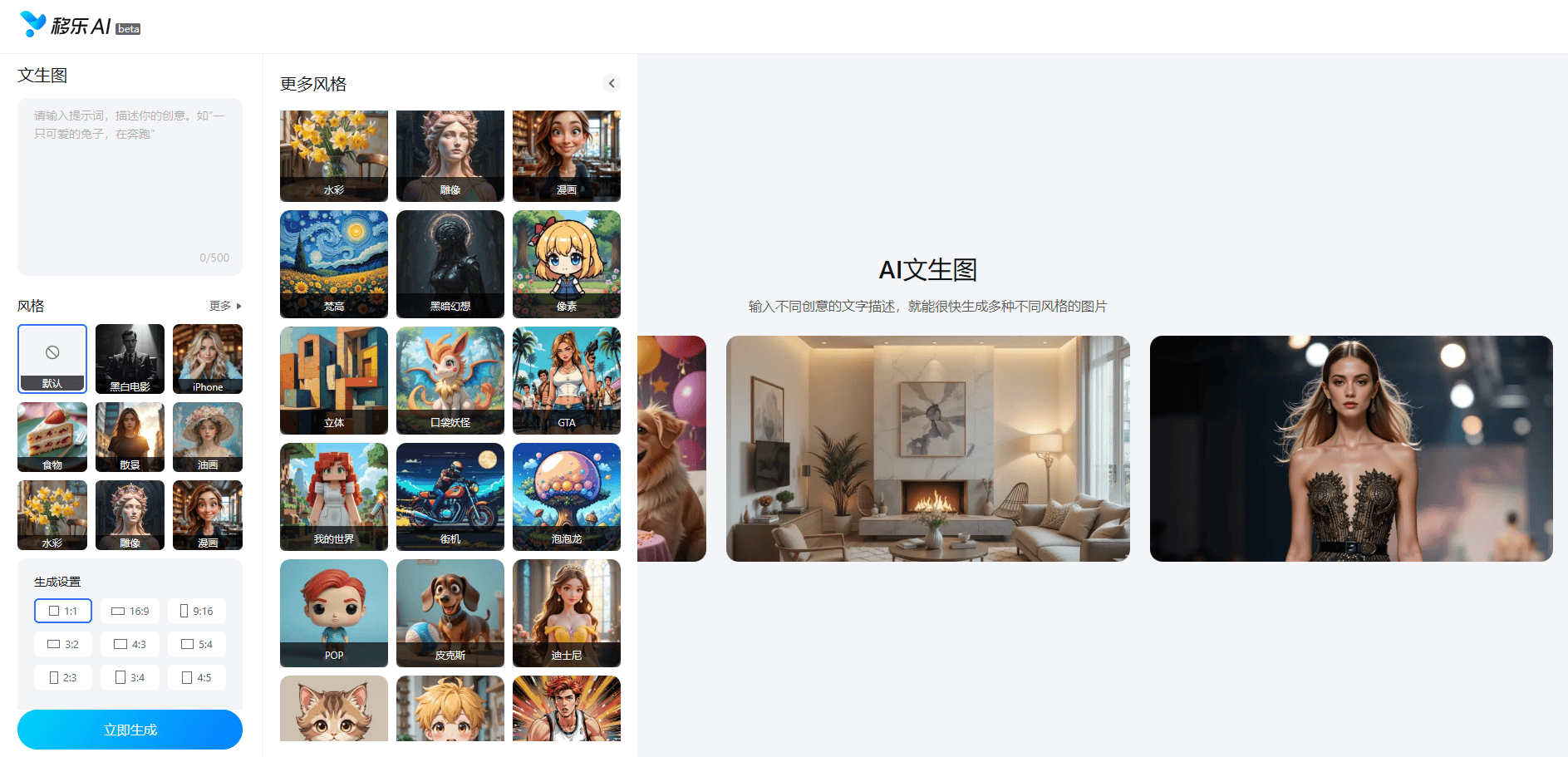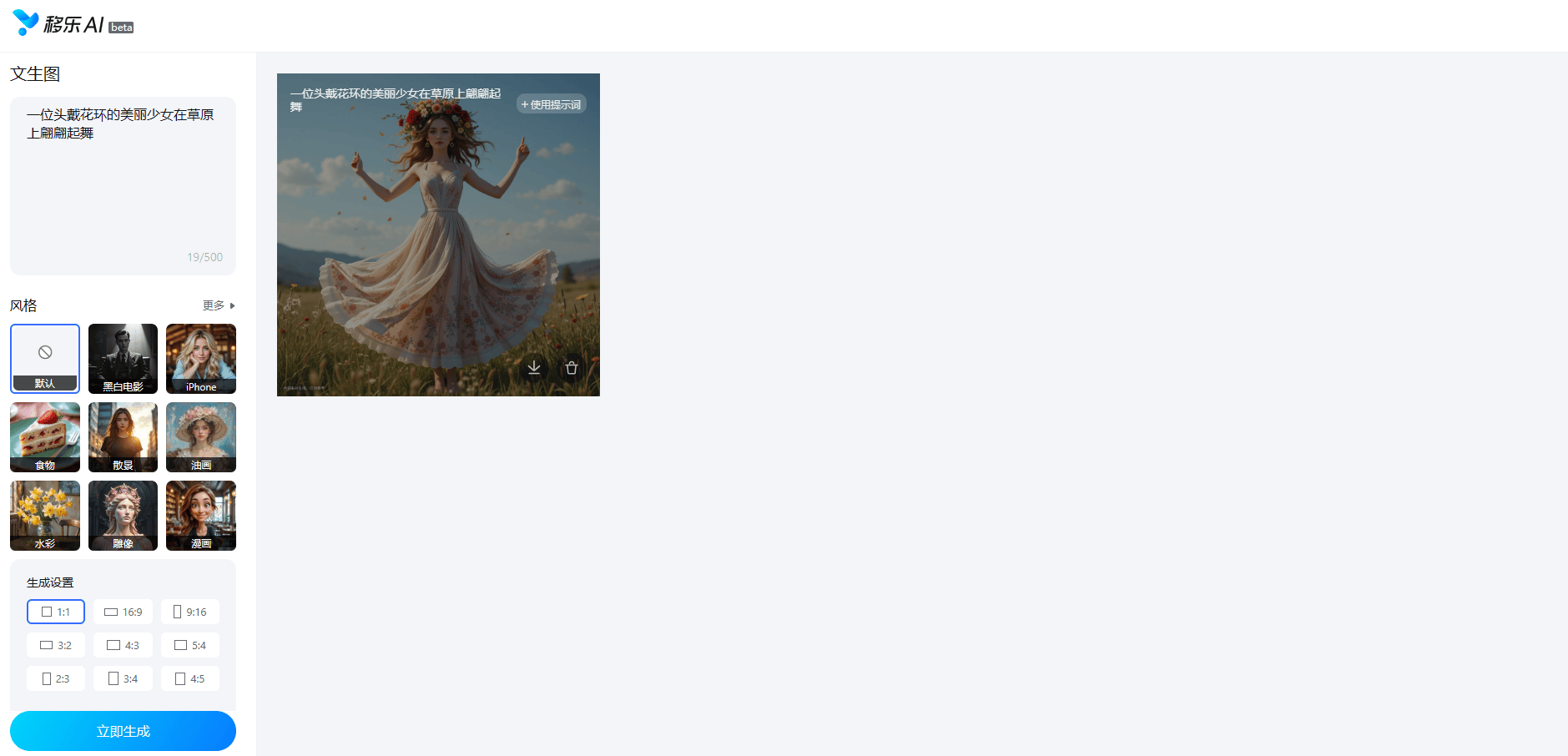移乐文生图是移乐AI网坐目前从打“明星产物”,同时紧跟人工智能手艺成长趋向,移乐AI以“免费所有AI产物”的斗胆决策,让每一小我都能平等地享遭到科技成长带来的盈利。这让不少小我用户和小型企业望而却步?
