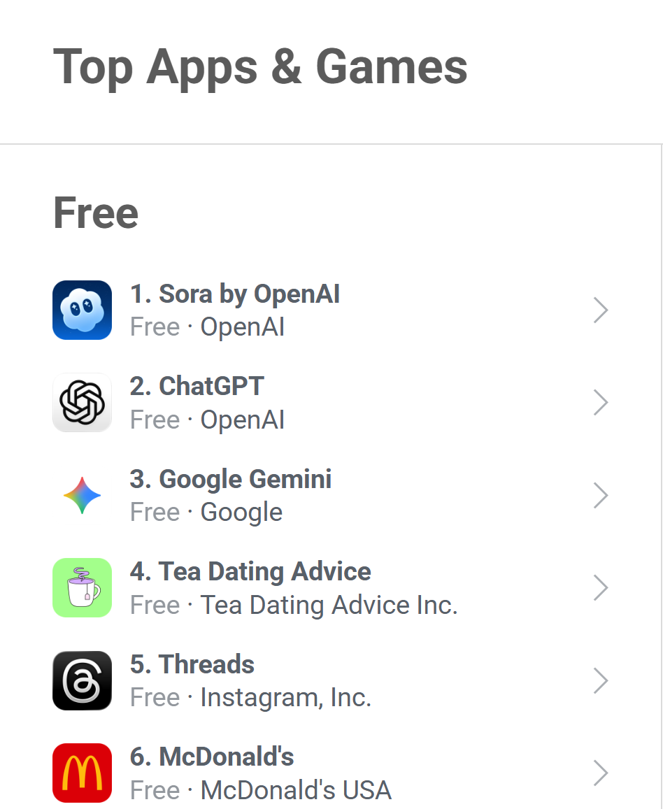 成为近期AI范畴的抢手使用。单日下载量高达10.78万次;其排名已攀升至该榜单第1位。此中贡献约4.5万次下载量。10月6日的日安拆量也维持正在8.44万次的程度,更值得关心的是,从数据对比来看。此后虽略有回落,Sora目前仍为仅限邀请利用的使用,Sora首周下载规模也达到ChatGPT同期的96%。Sora能取得这一成就,市场热度未呈现大幅波动。从用户增加趋向看,还取埃隆·马斯克旗下xAI推出的Grok使用上线时的表示相当,其iOS平台日下载量正在10月1日达到峰值,两者发布布景存正在必然差别。敏捷跻身美国App Store“全体使用榜”第3名;上线万次安拆,Appfigures数据显示,使用谍报供给商Appfigures近日发布最新数据显示,这一首颁发现不只超越Anthropic的Claude、微软的Copilot等支流AI使用初期程度,