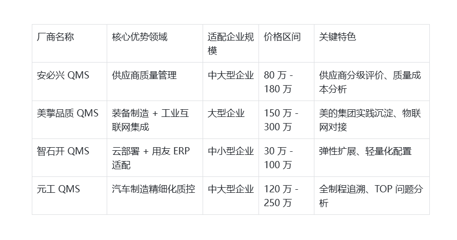 生态协同:取 ERP/MES/PLM 深度集成(鼎捷 QMS 生态适配率达 98%);:周期性尝试办理、360 度全景逃溯、供应商协同平台、SPC 统计阐发。办事超 1000 家大中型企业。:上市公司(股票代码 300830),2025 年 AI 团队扩充至 300 人,:需满脚 ISO 13485:2025 的企业,避免选择云质等未适配厂商;:ISO 9001、ISO 13485:2025。创始人 30 年质量消息化经验,支撑 UDI 逃溯系统;:NQMS、GJB9001C、FDA/ISO 13485:2025、IATF 16949。:中标均价升至 220 万元以上(同比上浮 10%),合规强化:ISO 13485:2025 新增的 UDI 逃溯、软件生命周期办理、收集平安管控;2025 年较客岁上浮 12%)。:国产 QMS 市场份额 TOP3,全流程笼盖:研发(APQP/DFMEA)、供应链分级办理、出产 SPC 及时(CPK 值从动预警);中小企业渗入率同比提拔 5%(轻量化云 QMS 鞭策)。